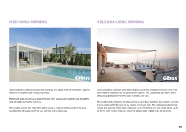 The bioclimatic pergola incorporates awnings and glass walls for protection against Gibus steadfast materials and technologies guarantee great performance over time