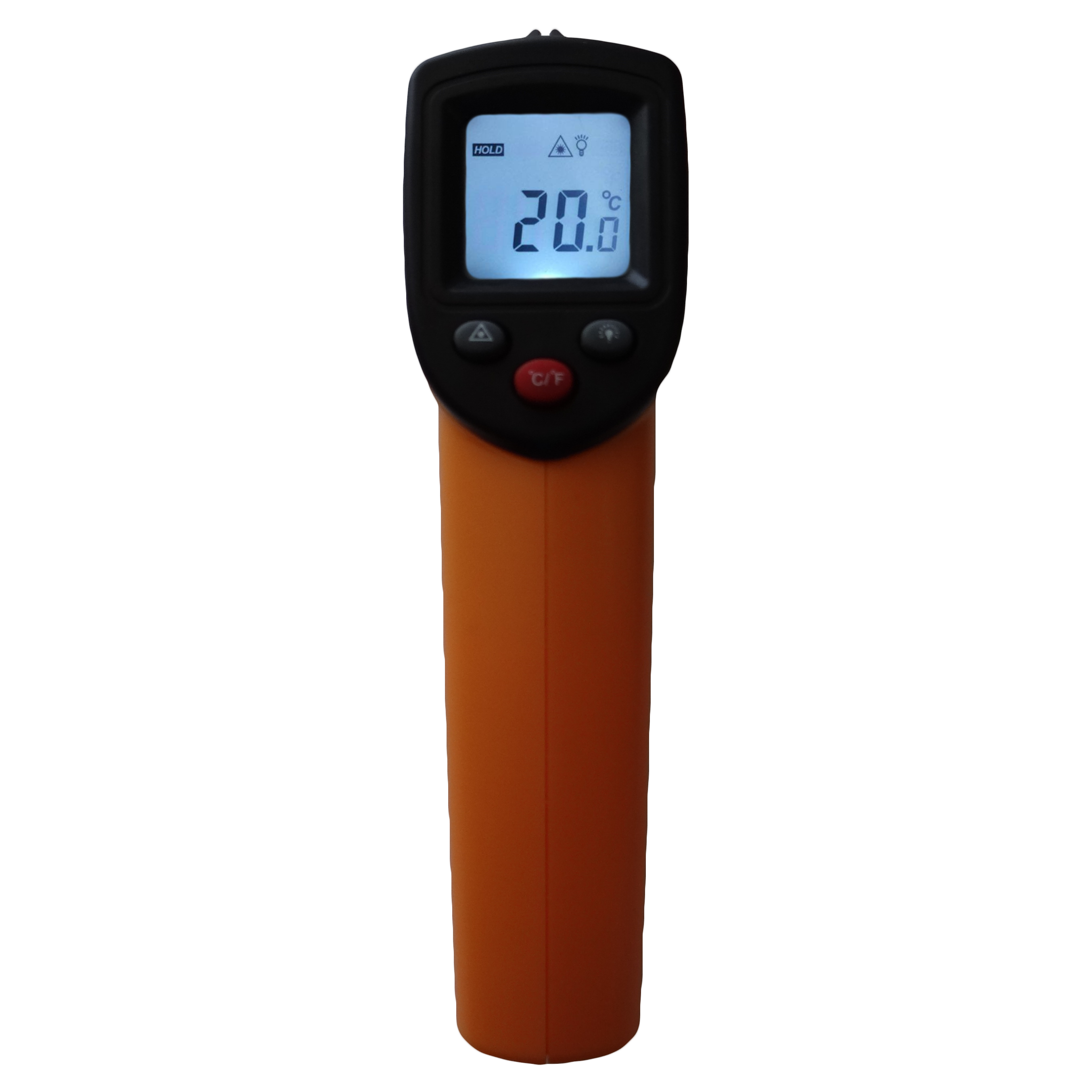 This pistol grip type infrared thermometer has a laser and backlight for easier targeting and operation. With the large -50°C to 330°C temperature range, real time maximum reading and an power saving auto shutoff mode this infrared thermometer is a great option for accurately measuring the temperatures of a number of surfaces on a limited budget.